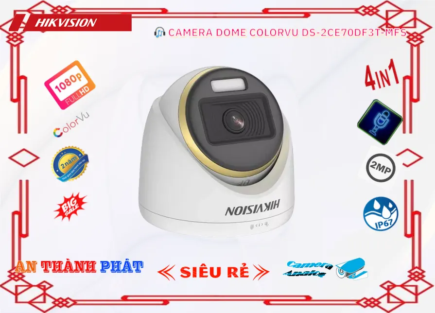 DS-2CE70DF3T-MFS là một camera Full Color với khả năng ghi âm và thiết kế nhỏ gọn, phù hợp cho cửa hàng, gia đình và văn phòng.