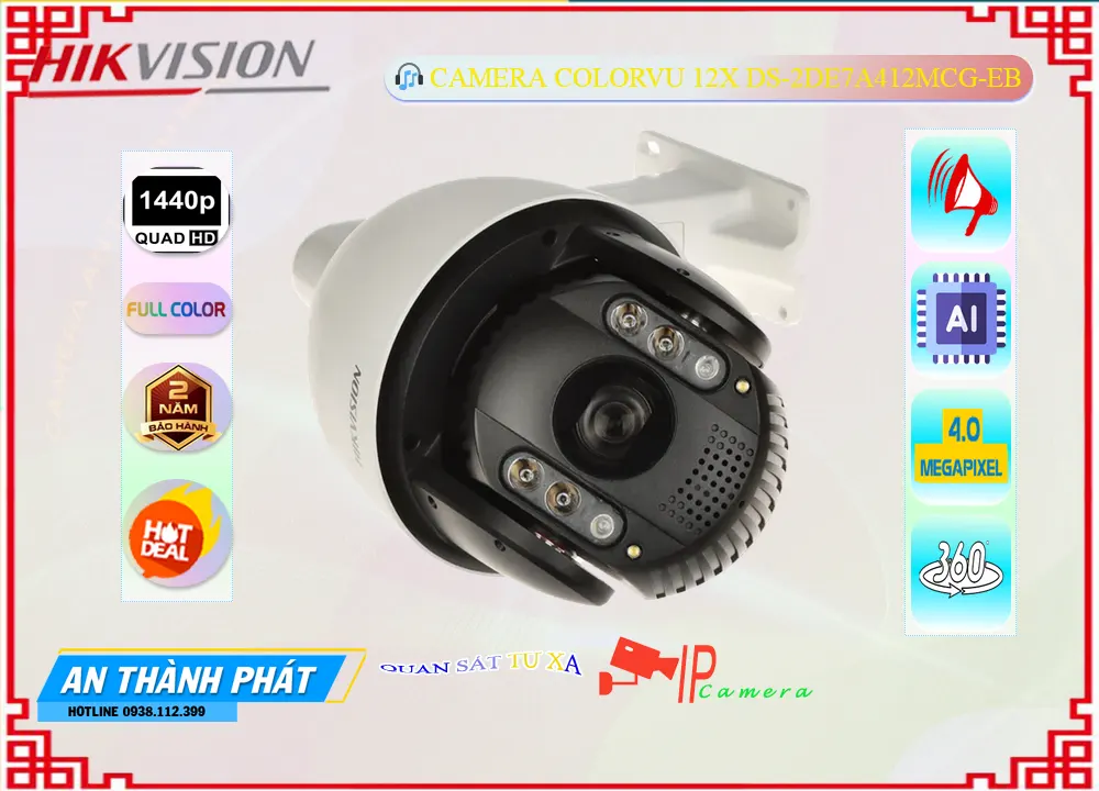 DS-2DE7A412MCG-EB Camera Hikvision Thương Hiệu Uy Tín Độ Phân Giải 4.0 MP Sử Dụng Công Nghệ IP Xem Ban Đêm Hồng Ngoại 150m Với Trang Bị Công Nghệ Có Màu Ban Đêm Thiết kế Kiểu Xoay 360 Với Chức Năng Xoay Zoom Khả Chống Ngược Sáng DWDR 120db Chất Lượng Chíp xử lý hình ảnh Progressive Scan CMOS phiên bản mới nhất chuẩn nén Nhận Khuôn Mặt lưu hình ảnh lâu hơn