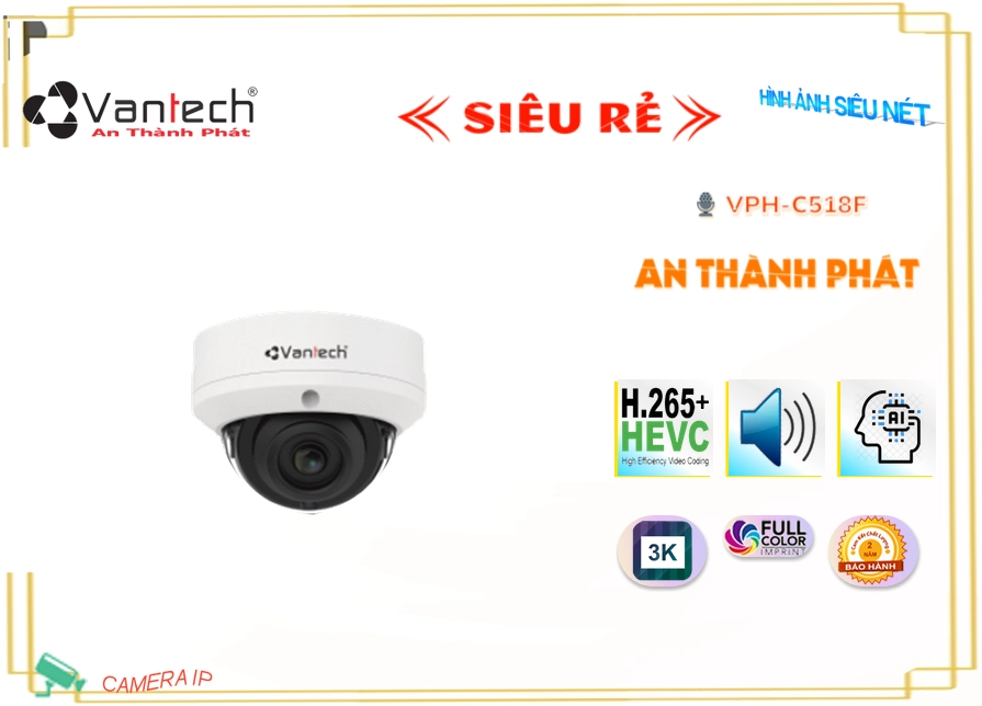 VPH-C518F là tính năng công nghệ AI thông minh xử lý hình ảnh thiếu sáng. Khi ánh sáng không đủ, camera sẽ tự động kích hoạt chế độ Màu Ban Ðêm để tăng cường chi tiết và chất lượng hình ảnh. Điểm nhấn ấn tượng làAn Thành Phát có thể nhận biết bạn có được hình ảnh rõ nét và chất lượng tốt mọi lúc.